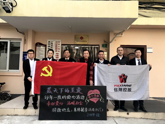 鈺翔控股集團創立35年來,一直積極堅持為社會慈善事業貢獻自己的力量,為貧困學子、災區群眾、藍天下的至愛、社區建設等捐款、捐物多次,累計捐款已超500萬元,為社會慈善貢獻了自己的力量。集團與東體居委會是結對共建單位,雙方也致力于堅持共同做好慈善工作,一起共同支持東體居委助老助殘幫幫隊,讓70歲以下的老年志愿者為70歲以上的老人送飯買菜的公益志愿活動持續下去。此外,我們還不定期慰問東體居委會十幾位90歲以上的老人;一起開展母親節幫助外來媳的手工義賣活動;一起開展多次共建、聯建、慶祝國慶等聯誼活動。集團黨總支還與崇明區城西小區、元六村等共建單位開展了豐富多彩的結對共建活動。