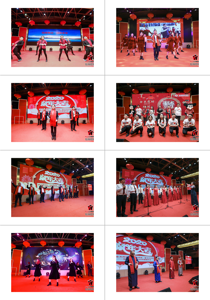 夜幕降臨,華燈初上,精彩紛呈的節(jié)目表演正式開始。節(jié)目中穿插的集團(tuán)大事記和榮譽(yù)、供應(yīng)商和服務(wù)商新春賀詞、集團(tuán)暖冬行動(dòng)、集團(tuán)好人好事四段視頻讓全場人員感動(dòng),一個(gè)個(gè)精彩的節(jié)目讓員工沉浸在節(jié)日的歡樂海洋中,最后的《相親相愛一家人》的大合唱將年會(huì)推向了高潮,集團(tuán)領(lǐng)導(dǎo)登臺獻(xiàn)唱,全體鈺翔人起立合唱,整個(gè)會(huì)場變成了鈺翔這個(gè)大家庭最熱烈溫馨的場景。