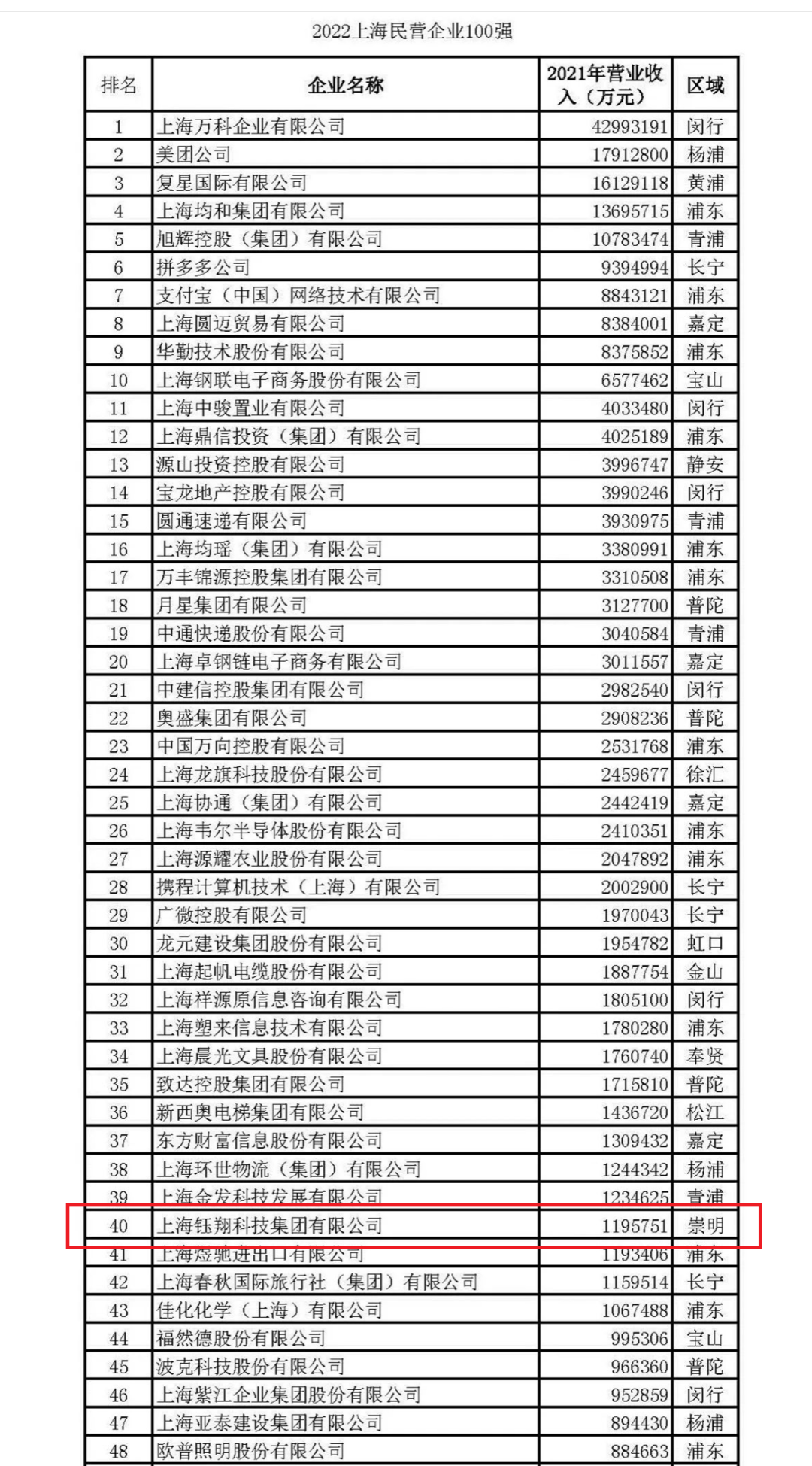 8月30日,由上海市企業(yè)聯(lián)合會、上海市企業(yè)家協(xié)會、上海市經(jīng)濟團體聯(lián)合會和解放日報社聯(lián)合主辦的2022上海百強企業(yè)發(fā)布會在上海隆重舉行,會上發(fā)布了2022上海企業(yè)百強、2022上海民營企業(yè)百強等多項企業(yè)榜單。